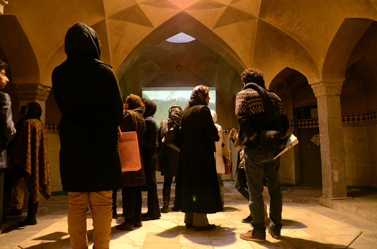 این ویدئو در دو مکان نمایش داده شد. نخست در «موزه حمام علیقلی آقا» و دوم در یکی از اتاق های جنوبی «پل خواجوی اصفهان» مجاور «زاینده رود». در زمان تعطیلات سیزده روزه عید باستانی ایرانیان. که جمعیت بسیاری از ایران برای تفریح به اصفهان آمده بودند و اثر بازدید بسیار خوبی داشت